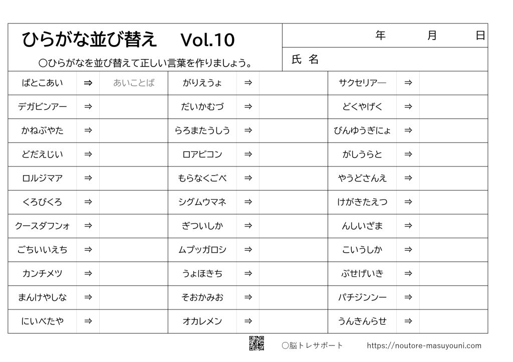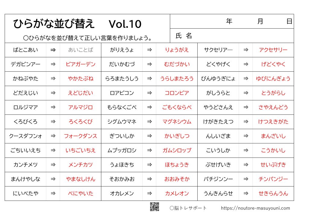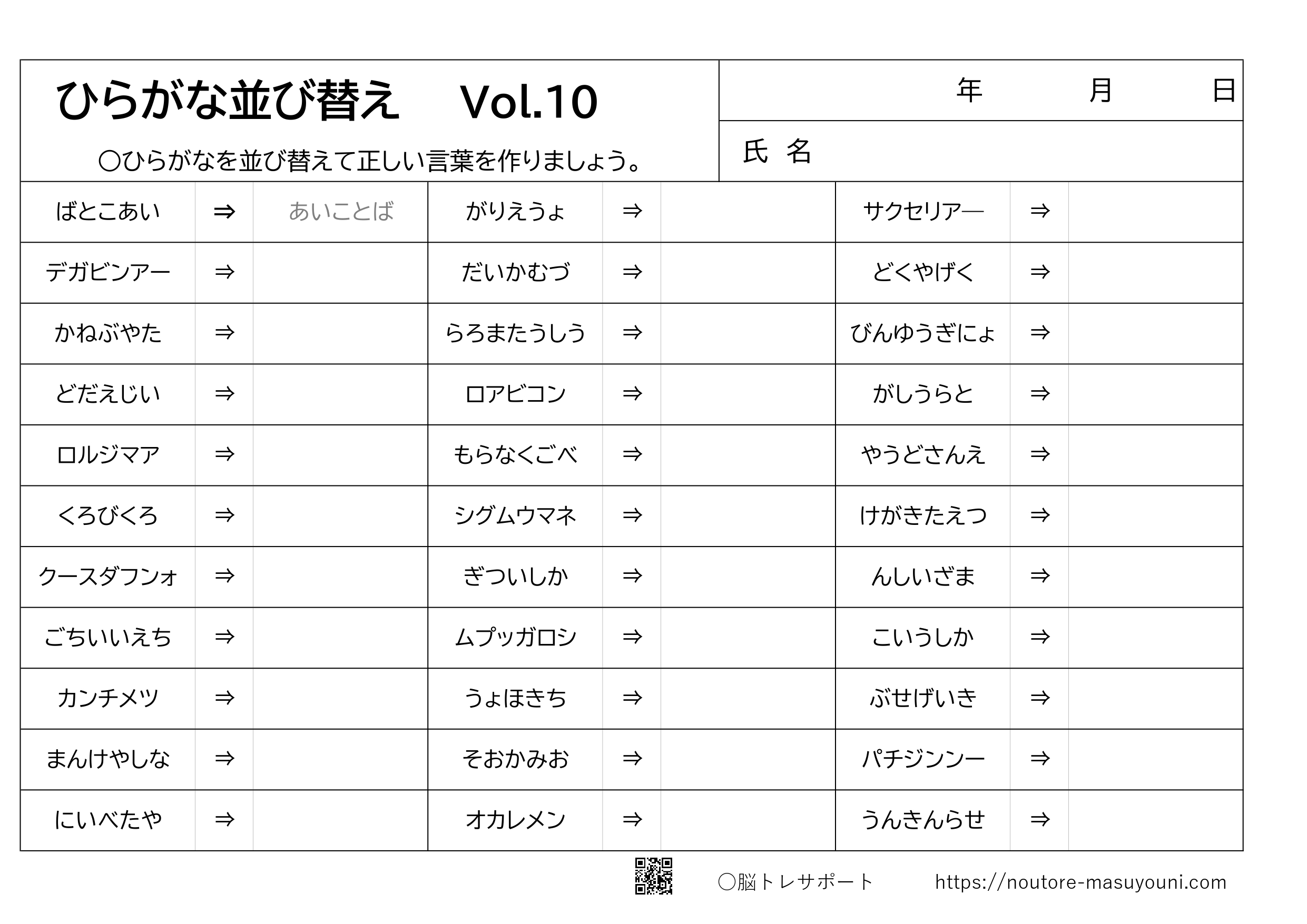 ○ひらがなを並べ替えて正しい言葉を作りましょう。プリント・解答ボタンにて印刷可能です。